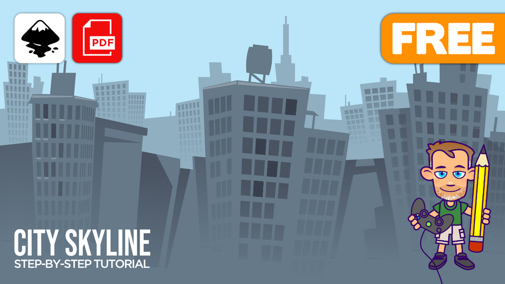 A 14-page PDF step-by-step tutorial for Inkscape on creating a cartoony city skyline