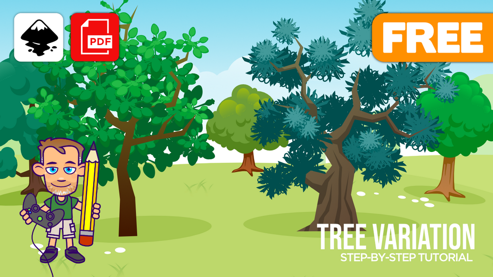 This PDF is a 16-page step-by-step tutorial on creating tree variations in Inkscape.